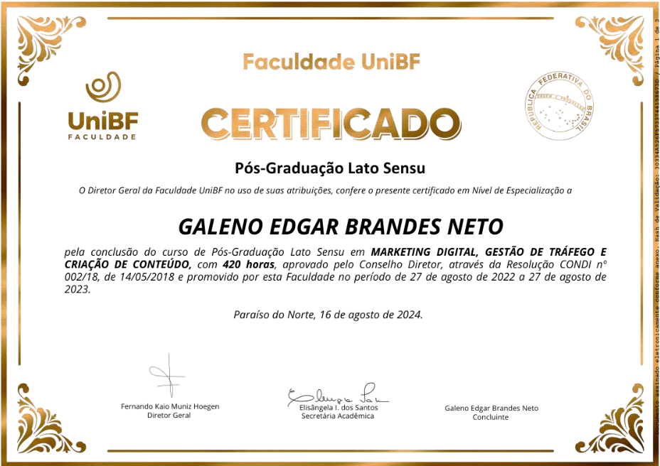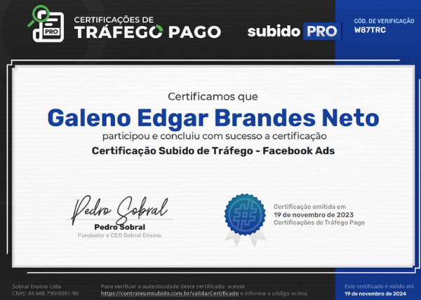 Sou Galeno Neto, publicitário com +22 anos de mercado, sendo 7 dedicados 100% a tráfego pago e performance digital.